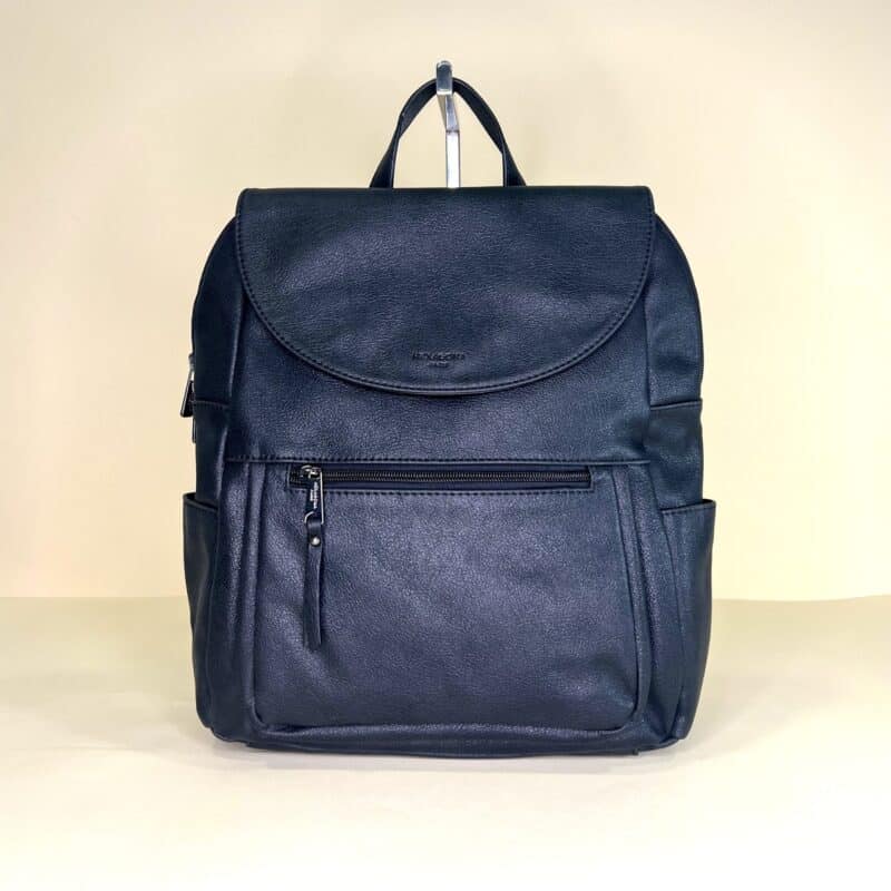 Zainetto ecopelle morbida chiusura a zip e pattina a bottone tasche laterali e tasca frontale