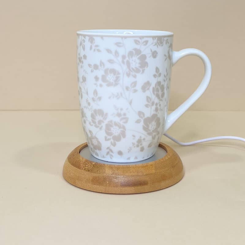 Scalda tazza in bamboo e metallo con alimentatore USB per tazze e bicchieri