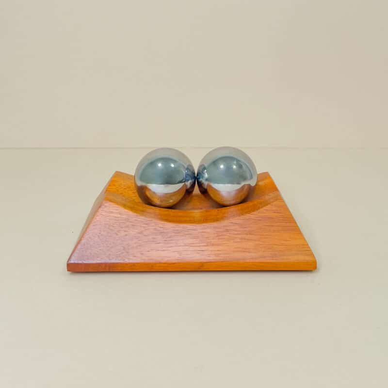 Set sfere palline antistress in acciaio con supporto in legno