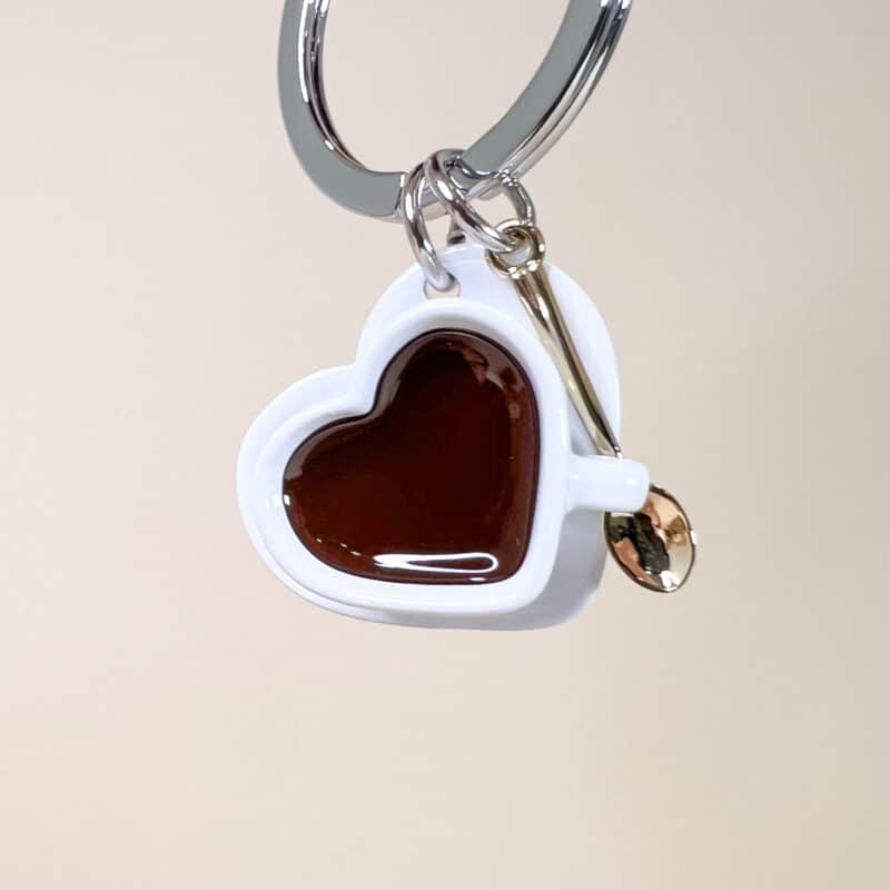 Portachiavi a forma di tazza di caffè a forma di cuore con cucchiaino