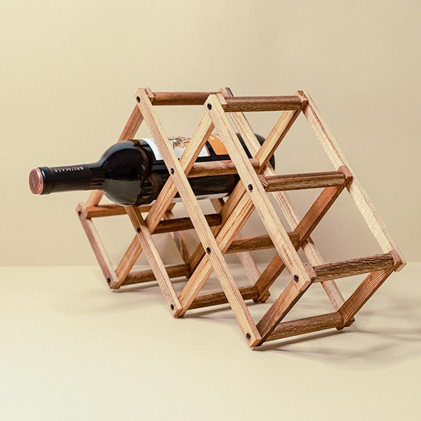 Porta bottiglie, cantinetta bottiglie di vino 6 bottiglie in legno di pino richiudibile pieghevole