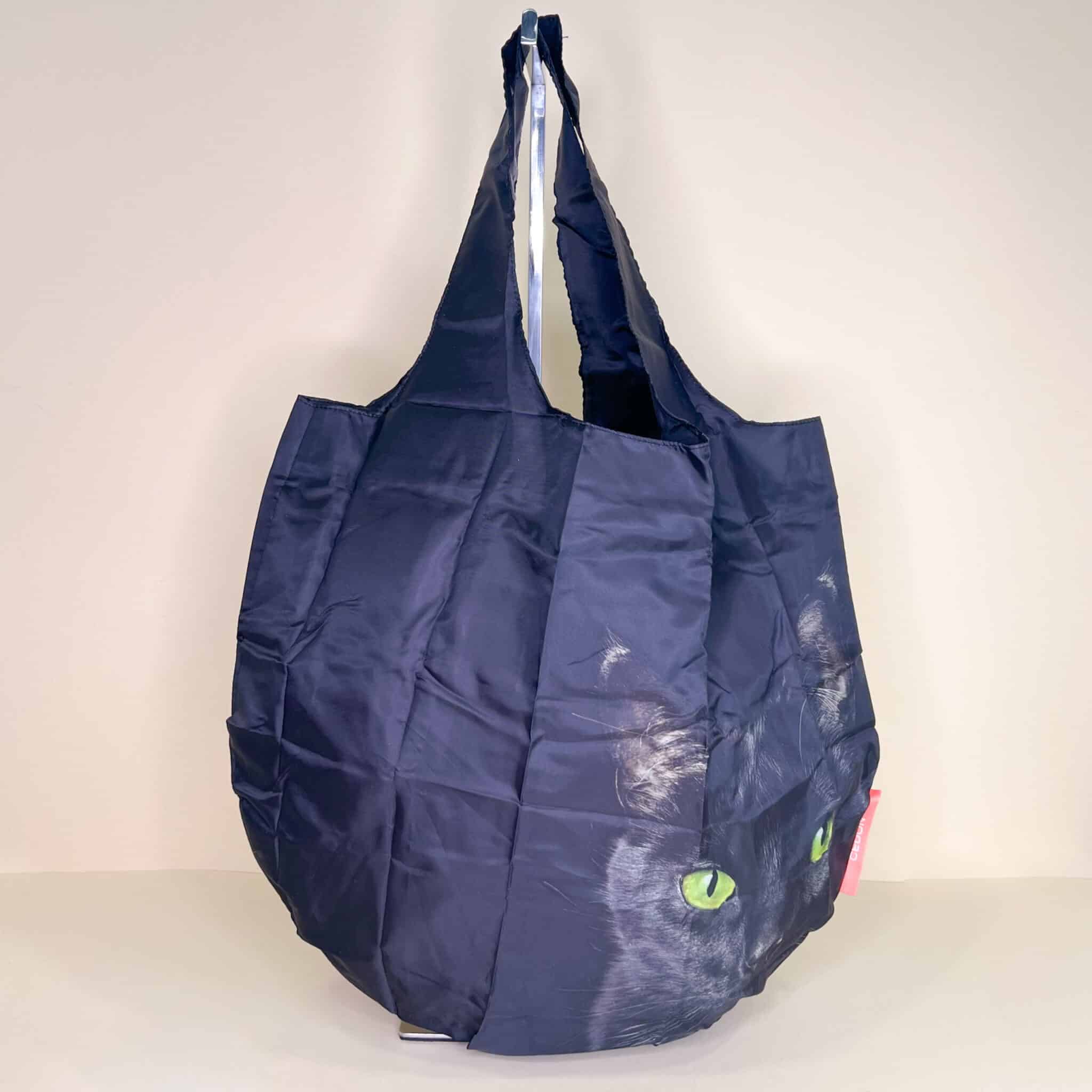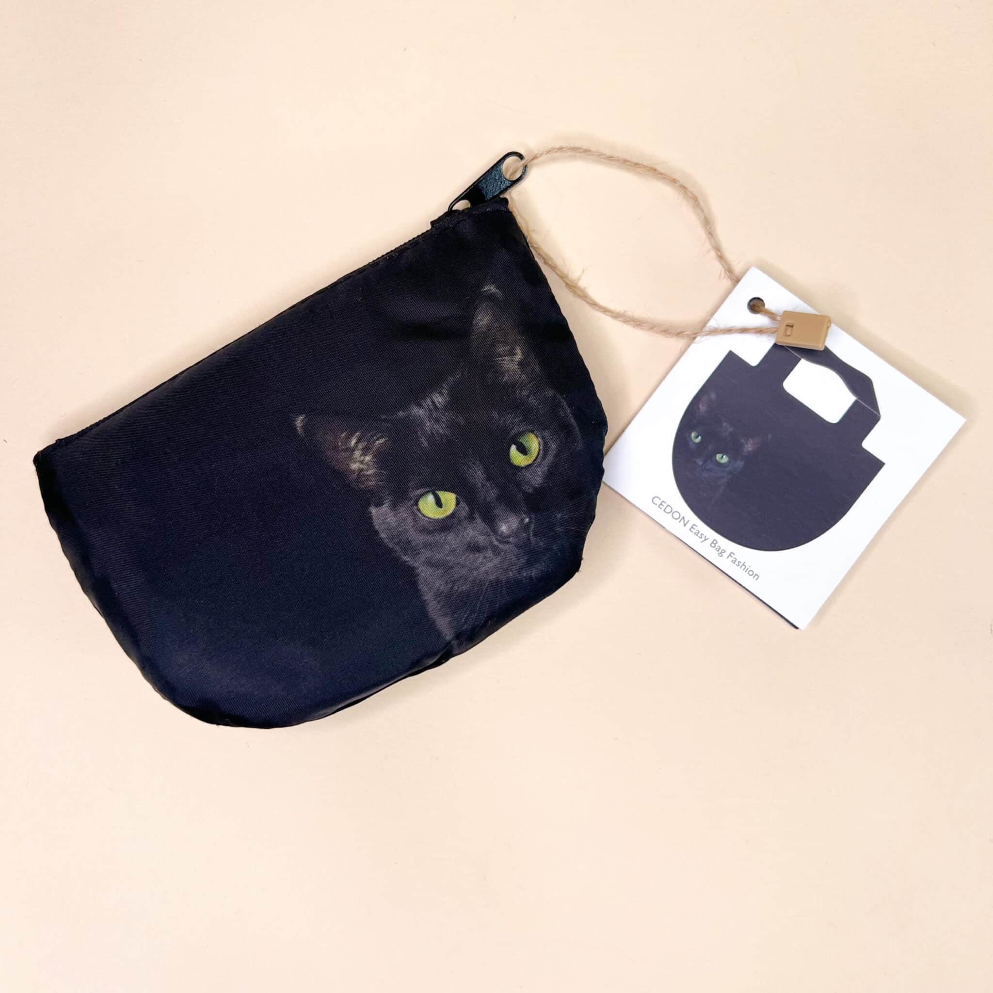 Porta con te un tocco di allegria felina durante il tuo shopping con la nostra borsa richiudibile shopper fantasia gatto nero.