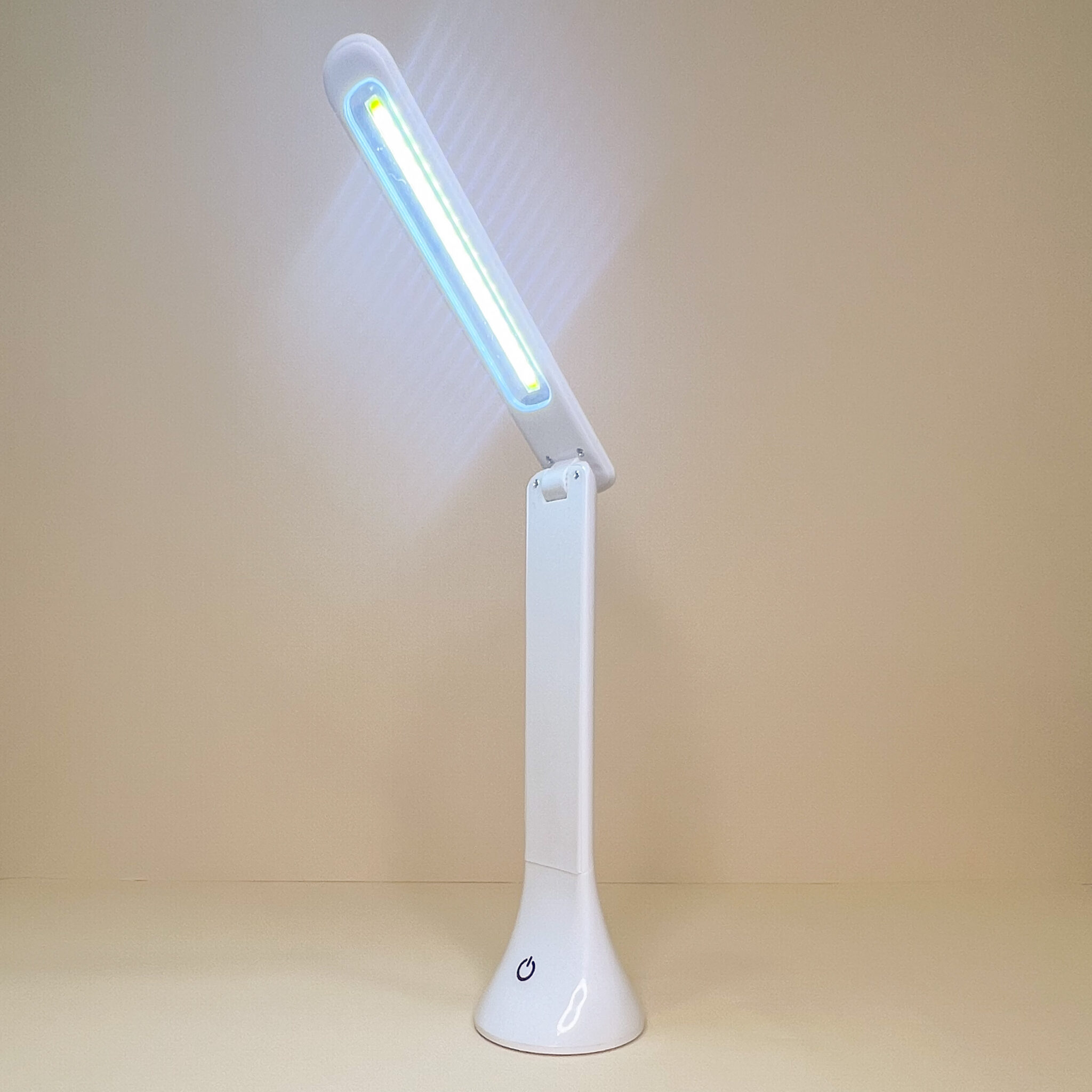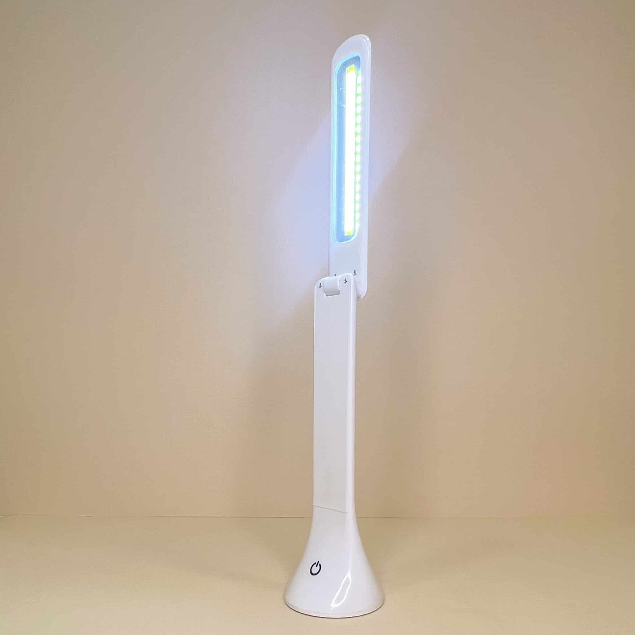 Lampada da scrivania o da comodino comoda e che non occupa troppo spazio grazie alla possibilità di chiuderla.