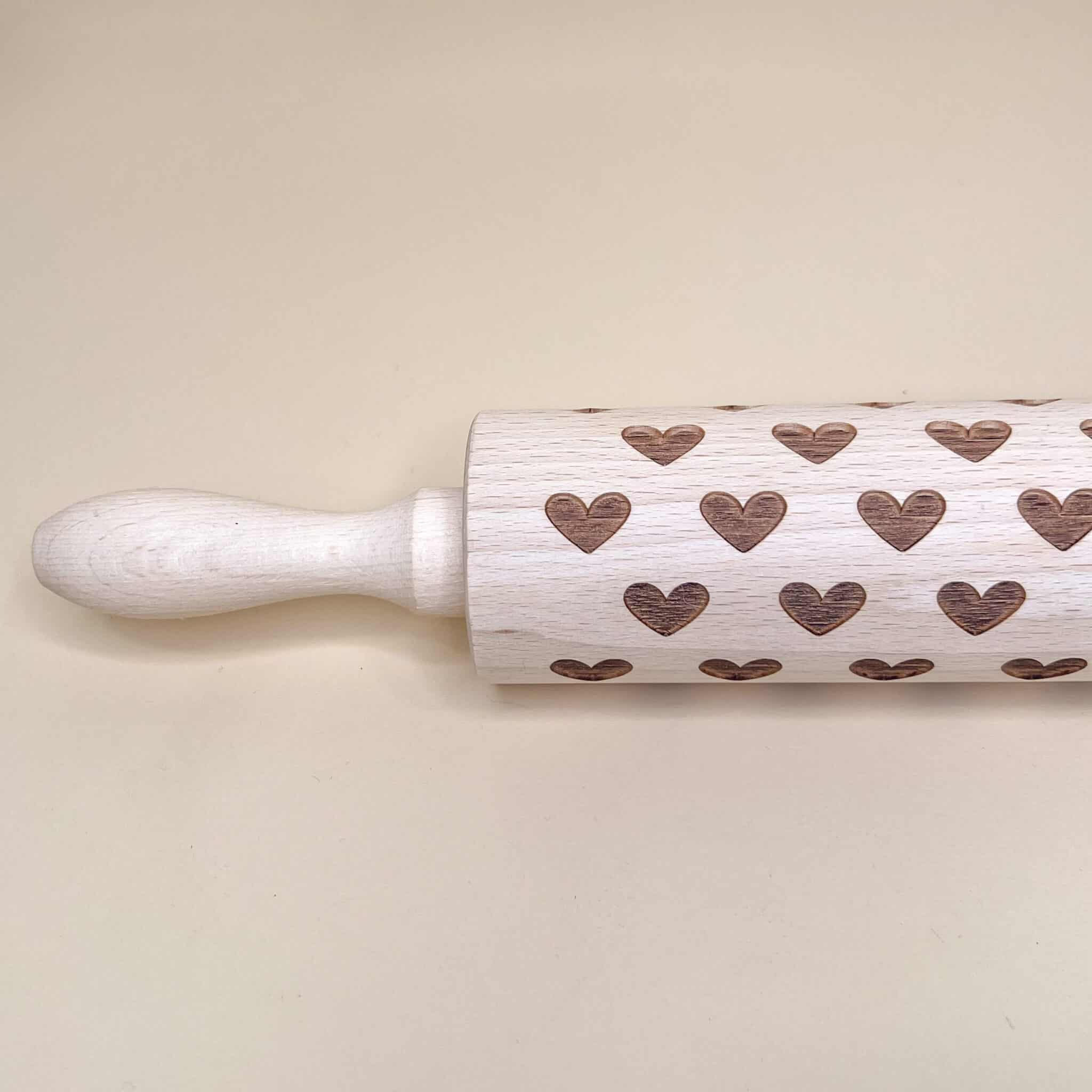 Aggiungi un tocco di romanticismo alla tua cucina e prepara delizie con amore utilizzando il nostro mattarello in legno con cuori incisi, perfetto per gli amanti della pasticceria e dei regali dal cuore