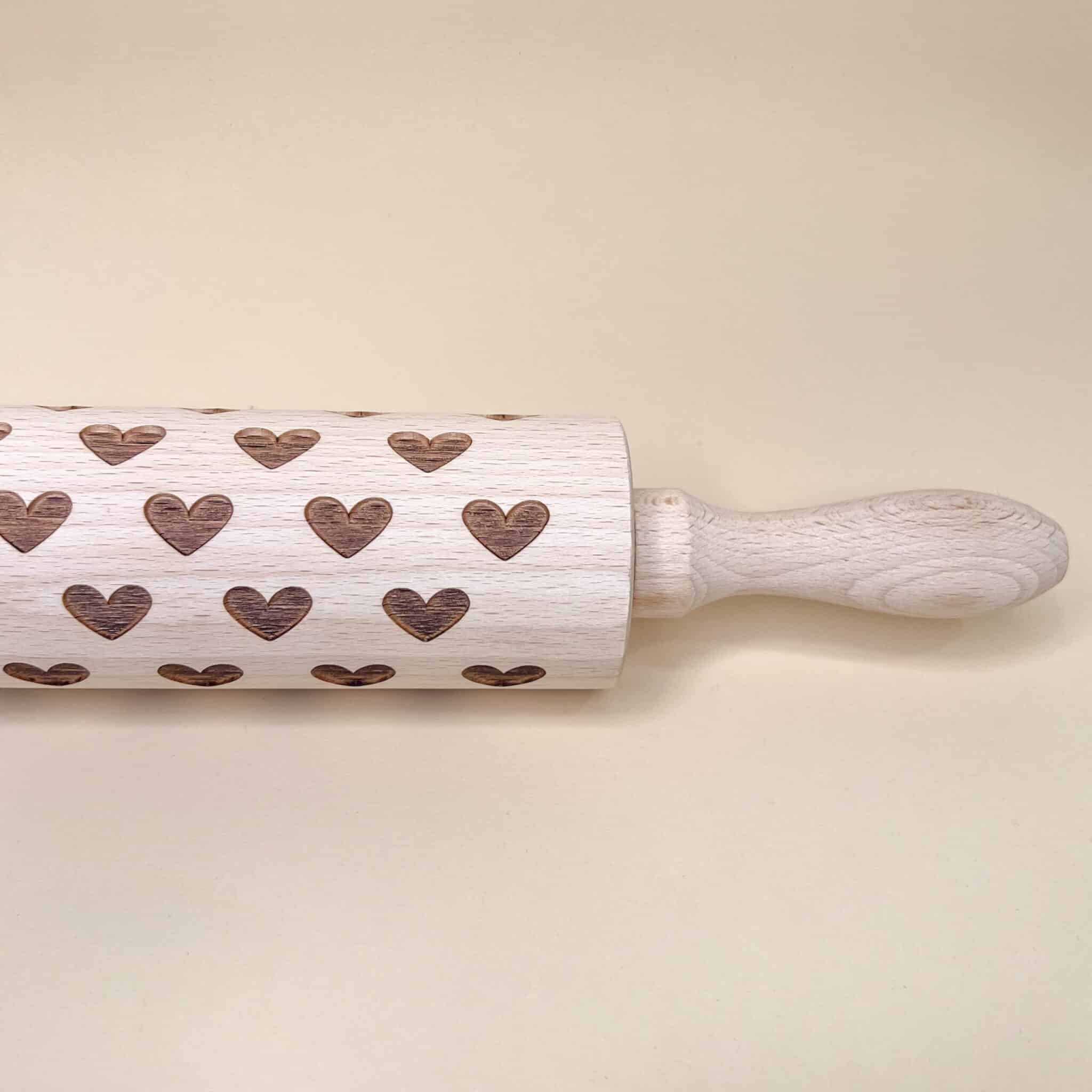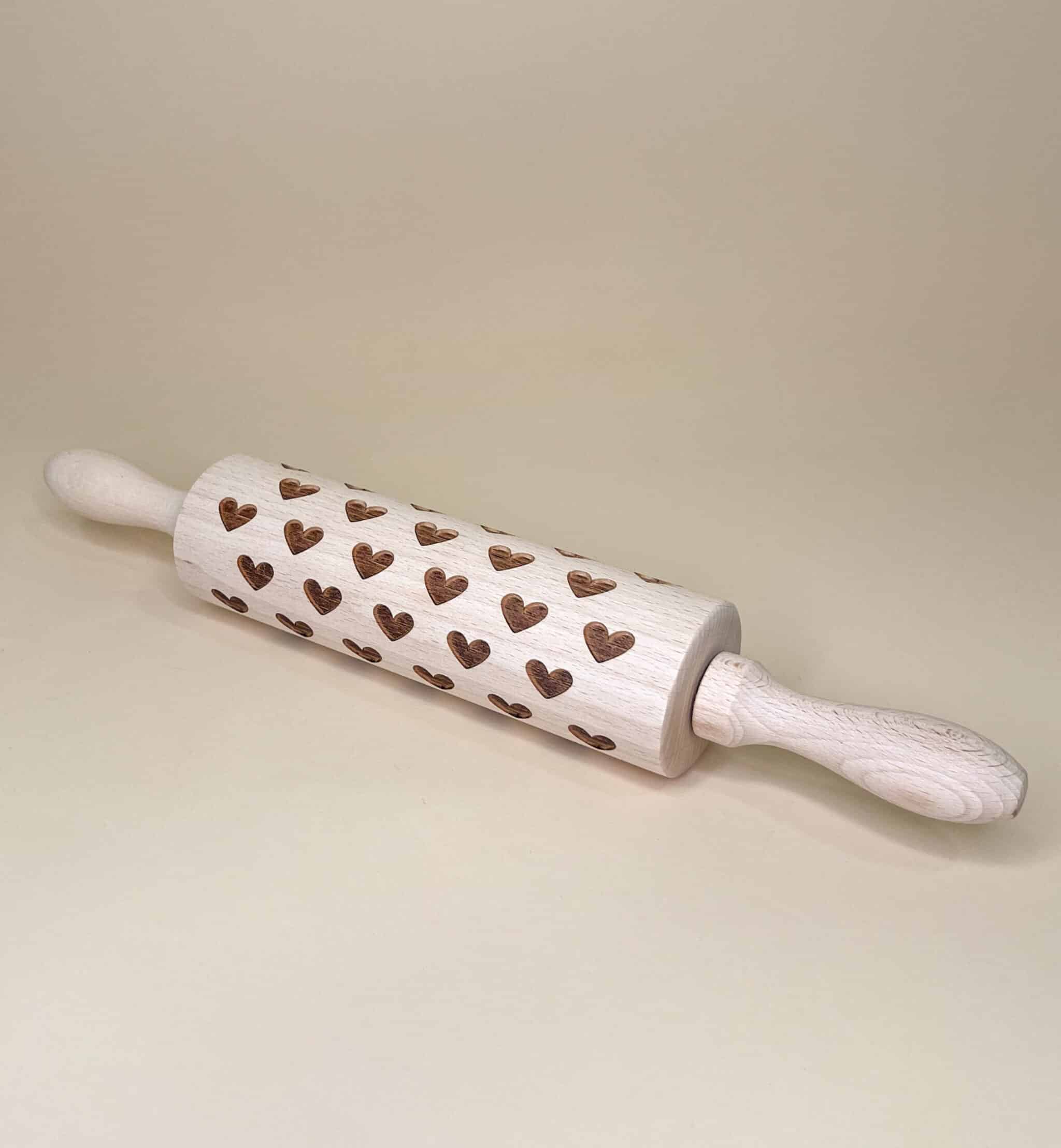 Il mattarello in legno con cuori incisi è l’aggiunta perfetta alla tua cucina per creare dolci e prelibatezze con amore.