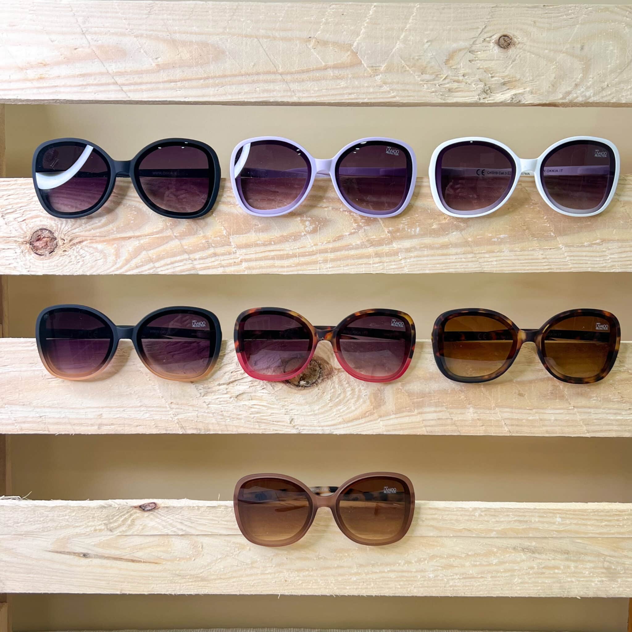 Occhiali da sole montatura farfalla grande in 7 colorazioni.