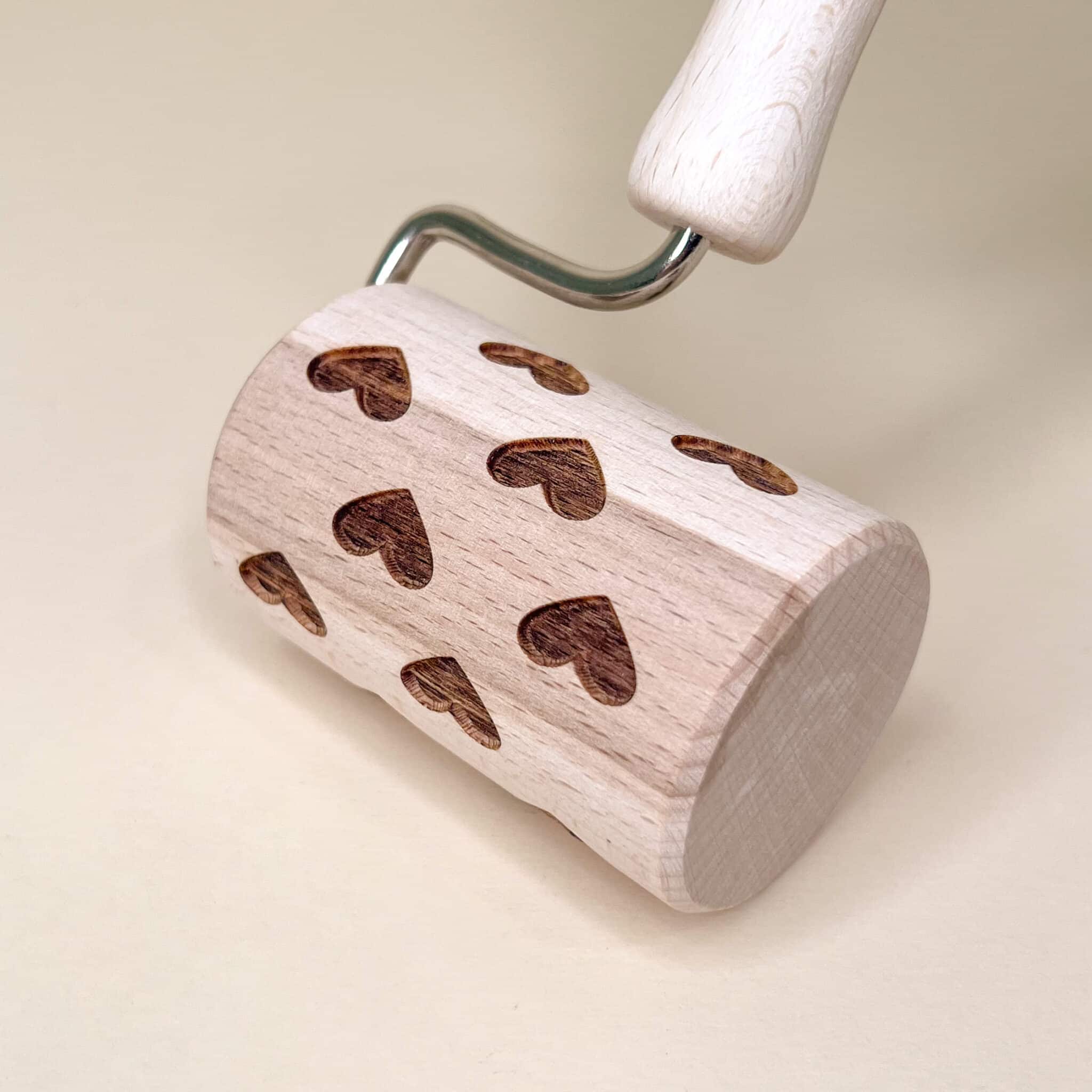 Piccolo mattarello rullo in legno con cuoricini incisi per tutte le ricette.