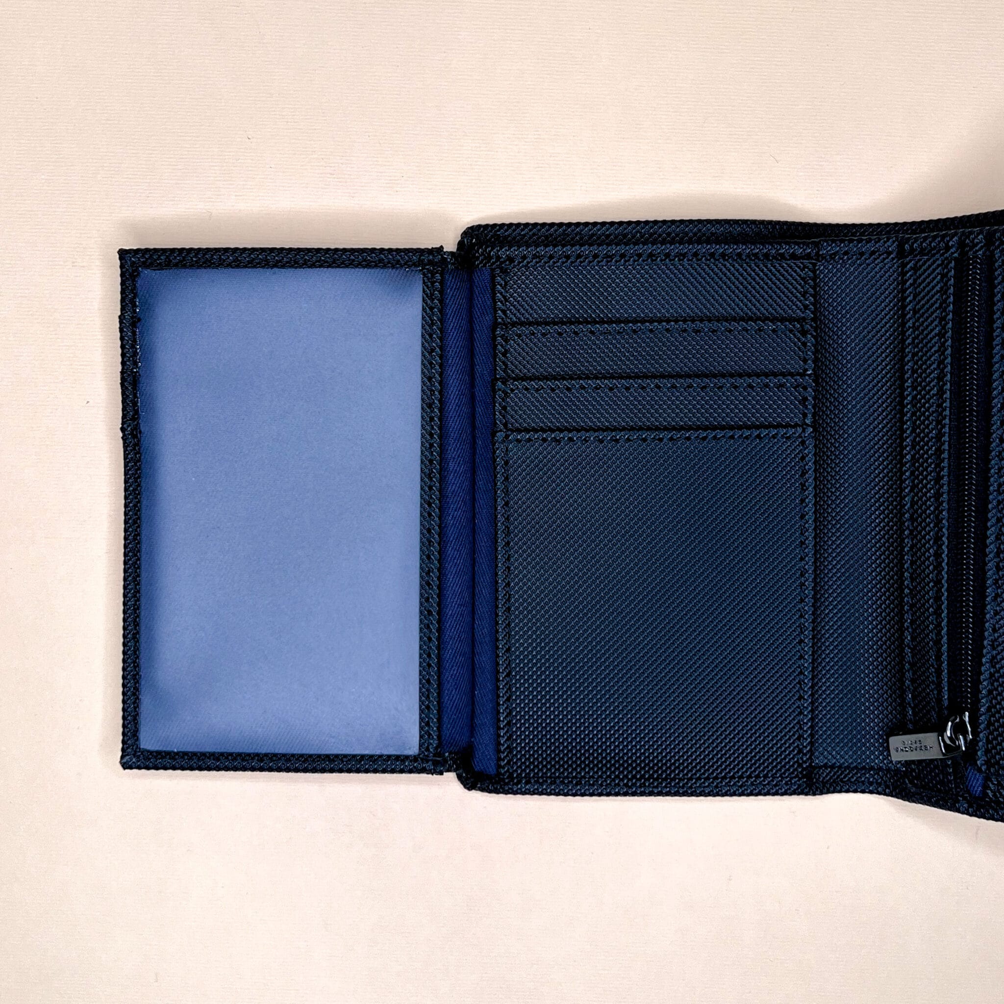 Portafoglio da uomo a libro in tessuto tecnico completo con porta tessere, porta monete, porta banconote.