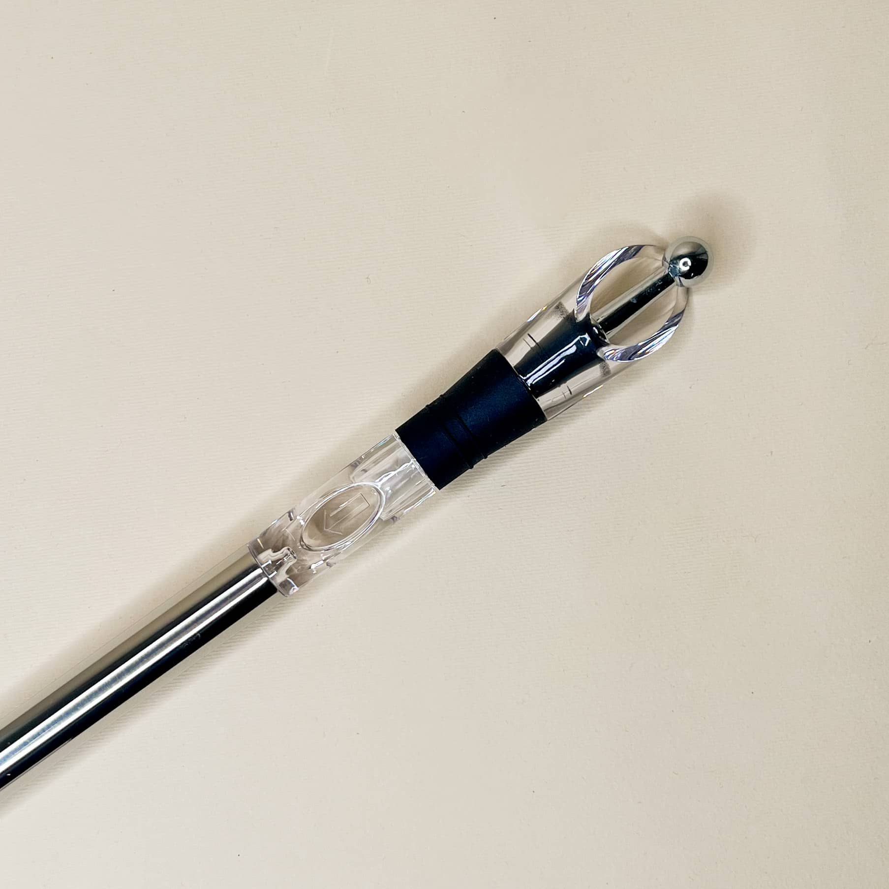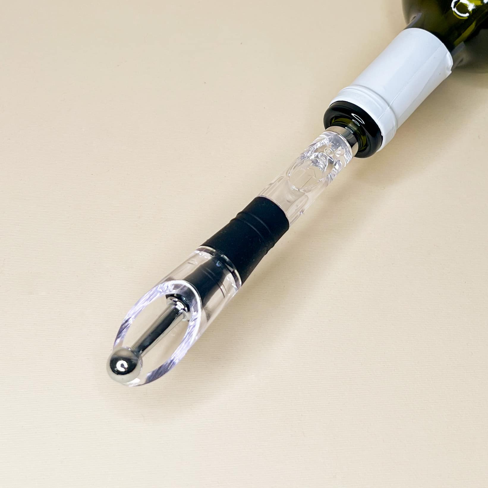 Refrigerante vino bacchetta di raffreddamento in acciaio inox con beccuccio anti goccia e tappo con dettagli in silicone.