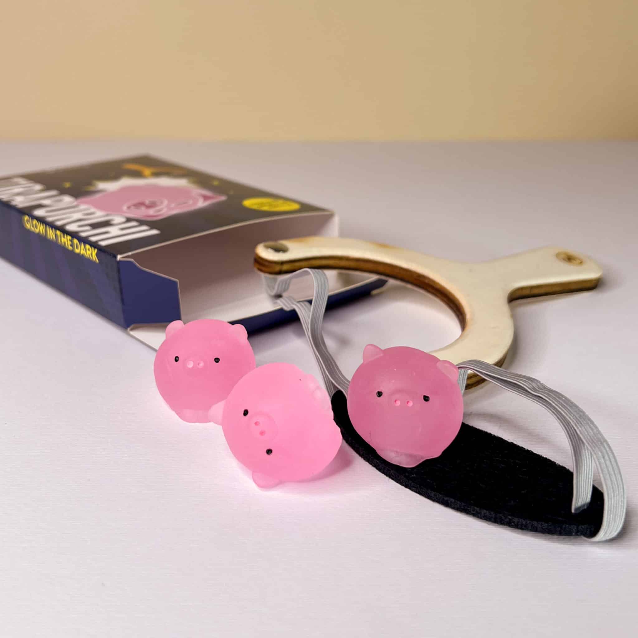 Tiraporchi fionda con 3 maialini GLOW.